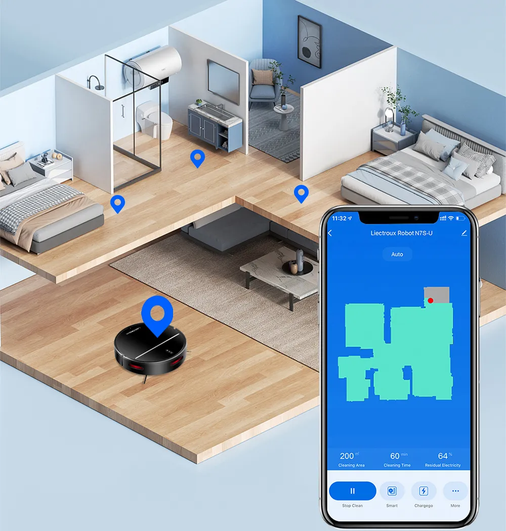 Precis lasernavigering – Kartlägger hela ditt hem för effektiv och grundlig rengöring, så att du kan säga adjö till missade fläckar.