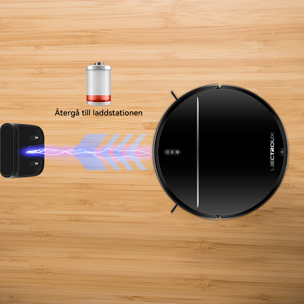 Aetheros hanterar enkelt sin egen ström. När batteriet börjar bli lågt återvänder den automatiskt till sin laddningsdocka, laddar sig själv och blir redo för nästa städcykel. Njut av kontinuerlig renhet utan att lyfta ett finger.