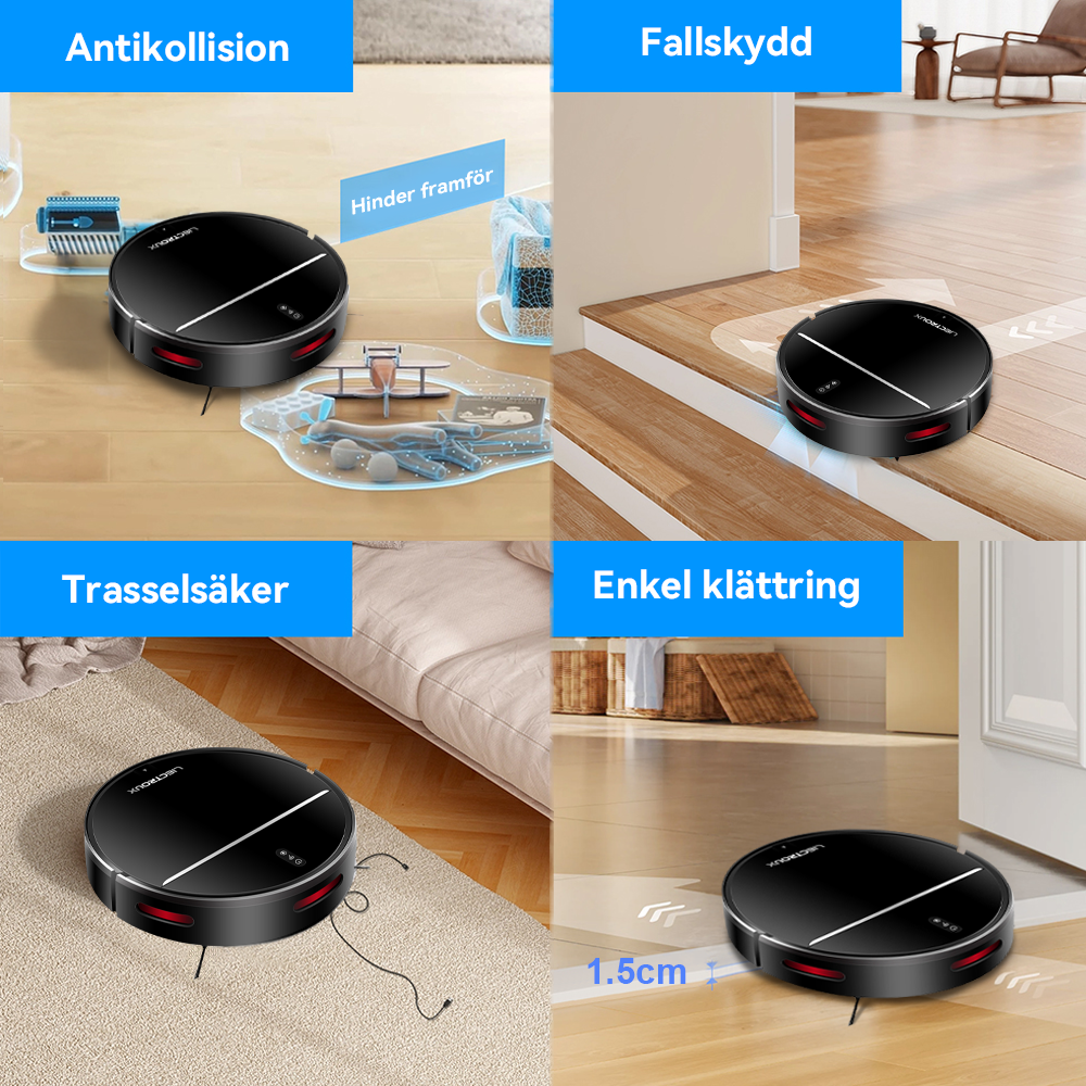 Varje hem är unikt, och det är även dina städbehov. Denna robotdammsugare erbjuder flera justeringslägen, vilket låter dig anpassa dess prestanda. Välj mellan olika sugnivåer, borsthastigheter eller städmönster för att perfekt matcha din golvtyp och smutsnivå, vilket säkerställer en optimerad rengöring varje gång.